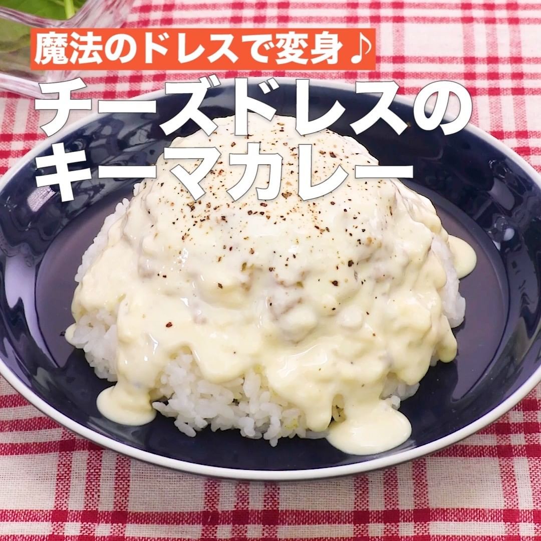 とろ〜っとたっぷりチーズをかけるキーマカレーをご紹介!キーマカレー、チーズソースはレンジでお手軽に作れます!パパッとしっかり食べたい時におすすめです♪