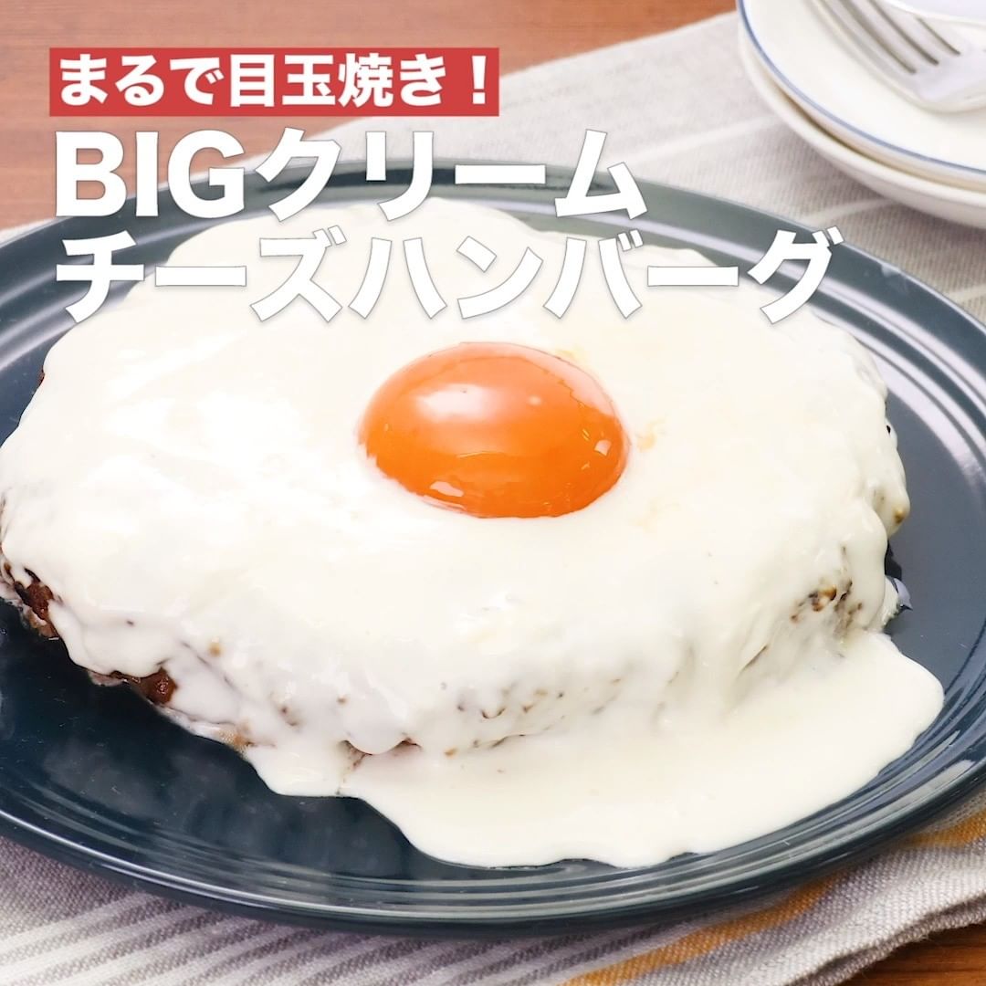 ①<まるで目玉焼き!BIGクリームチーズハンバーグ>