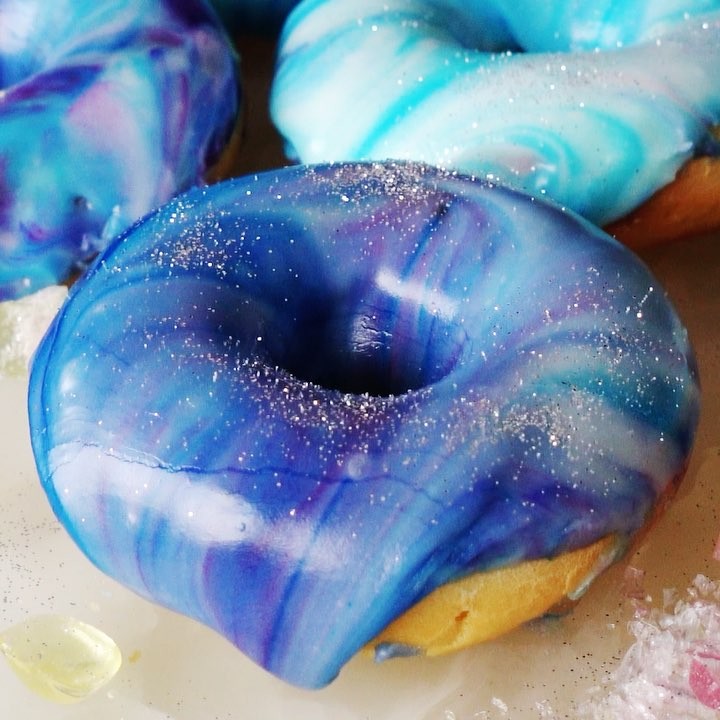3.ドーナッツの表面にアイシングをつけ、食用のラメを付けたら完成!