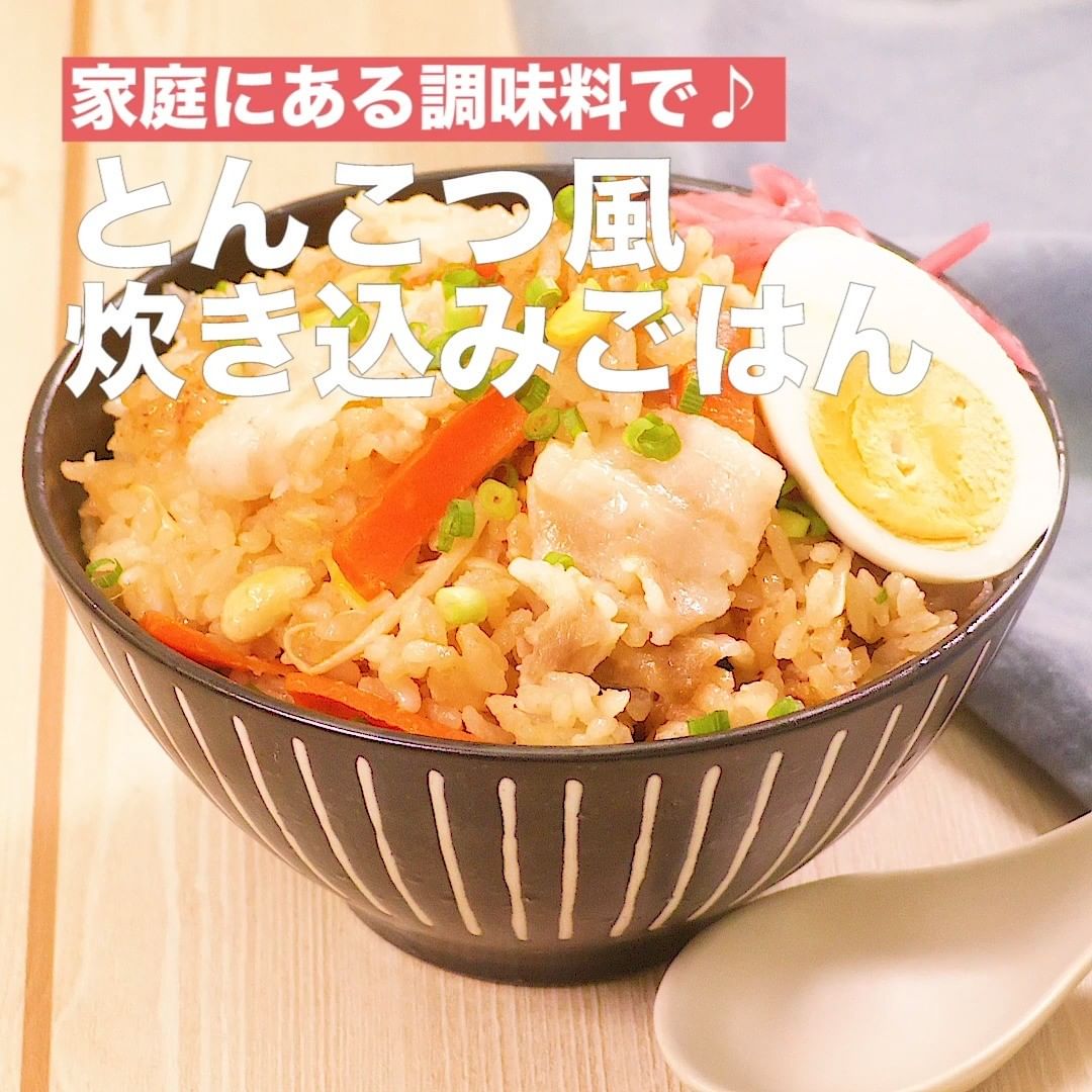 ②<家庭にある調味料で♪とんこつ風炊き込みごはん>