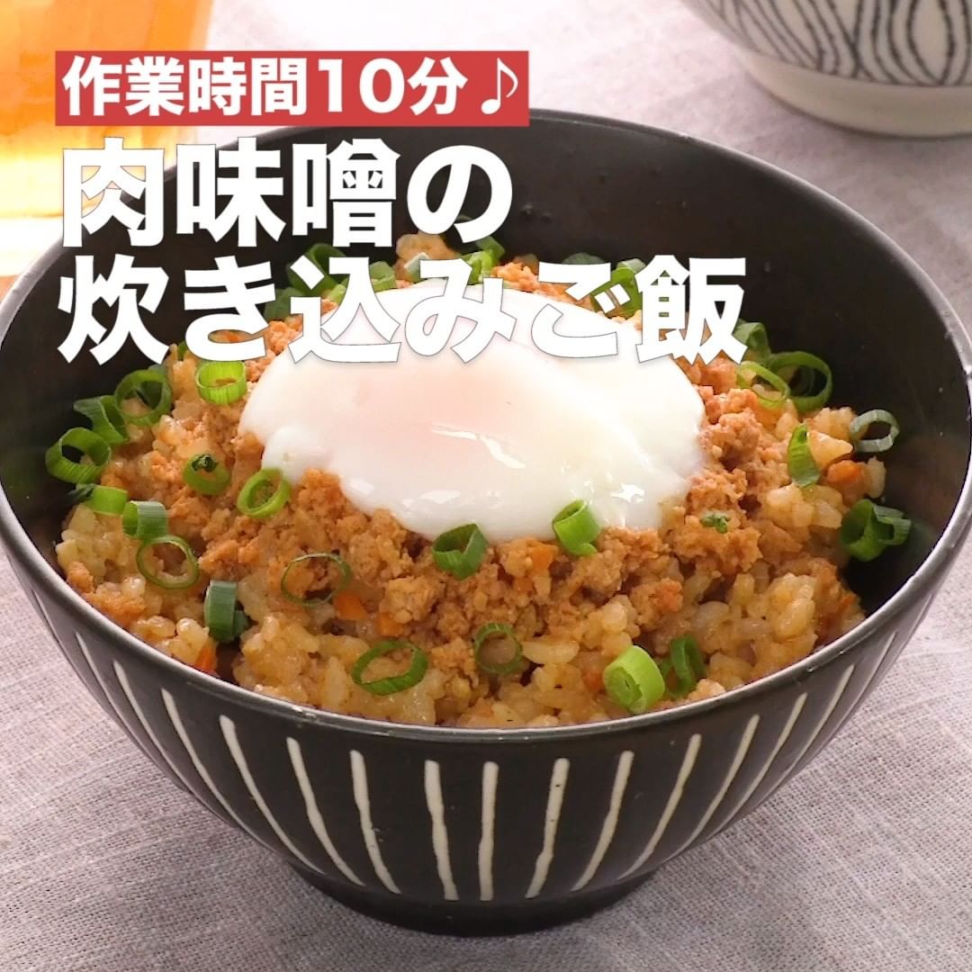 ①<作業時間10分♪肉味噌の炊き込みご飯>
