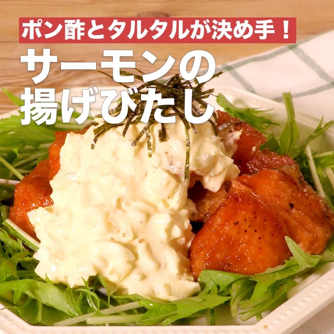 ⑥<ポン酢とタルタルが決め手!サーモンの揚げびたし>