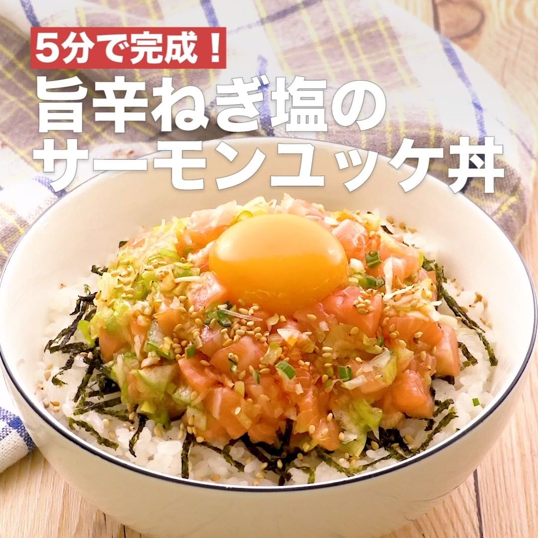 ④<5分で完成!旨辛ねぎ塩のサーモンユッケ丼>