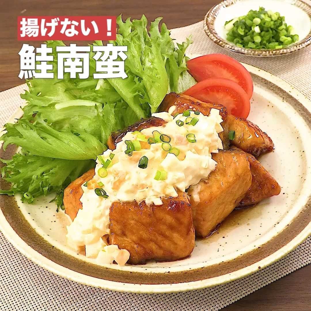 鮭を揚げないチキン南蛮風にアレンジ♪ 甘酸っぱいこってりとした南蛮だれとマイルドなタルタルソースでやみつきの味になります!