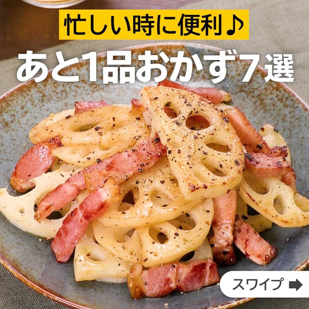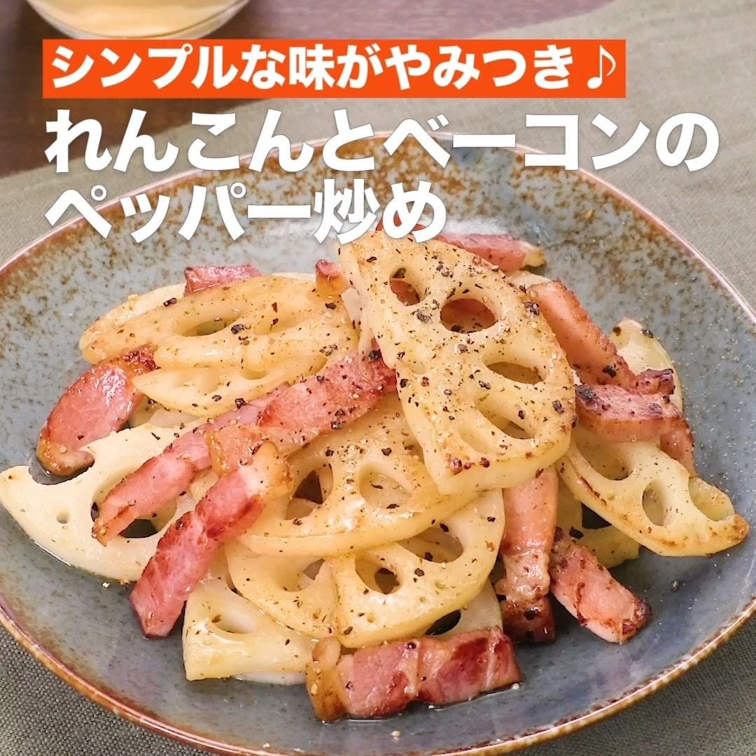 ①<シンプルな味がやみつき♪れんこんとベーコンのペッパー炒め>