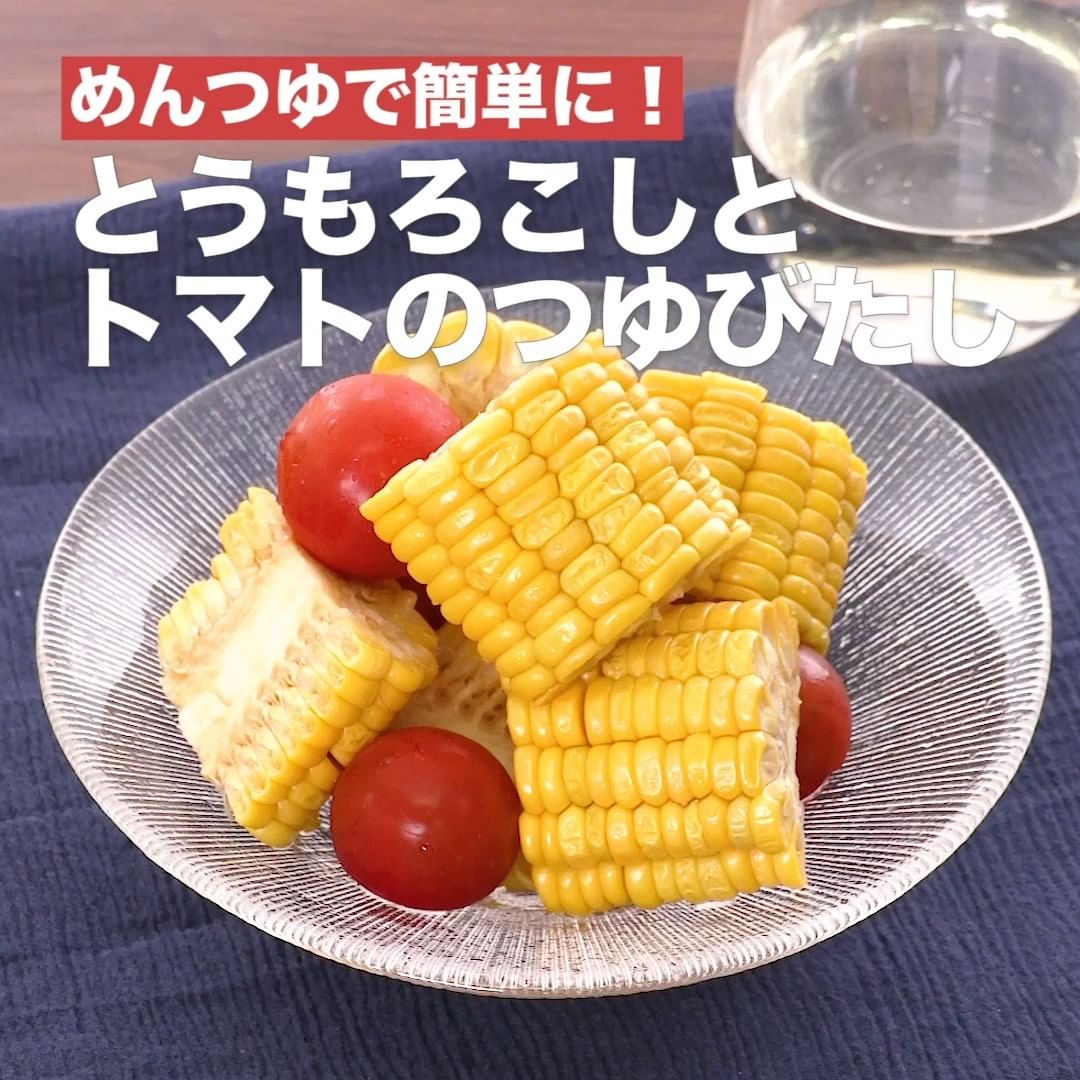 ⑥<めんつゆで簡単に!とうもろこしとトマトのつゆびたし>