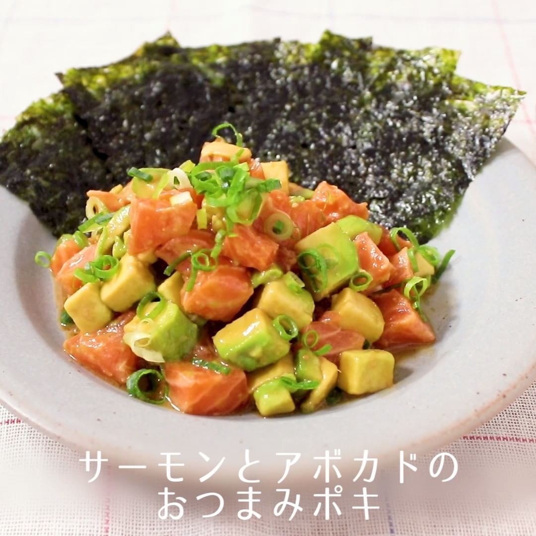 ⑤サーモンとアボカドのおつまみポキ
