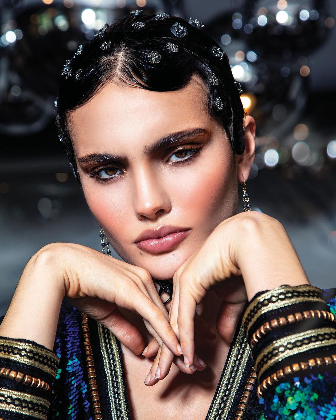 I shot, styled the hair and wardrobe on this shoot along with one of my favorite make-up artists. I used only one beauty dish without a socket above her head at a 45-degree angle. I wanted to achieve a blurred background with bokeh, so I shot the subject very close while having a relatively good distance from the mirror balls hanging at the bar to accomplish this look.”
