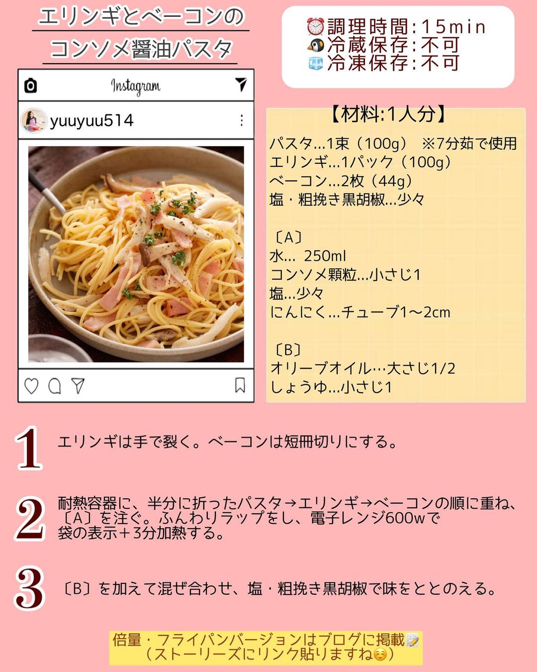 ➋エリンギとベーコンのコンソメ醤油パスタ