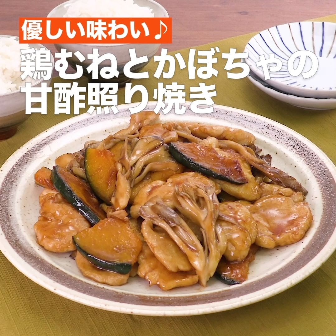 ⑥<優しい味わい♪鶏むねとかぼちゃの甘酢照り焼き>