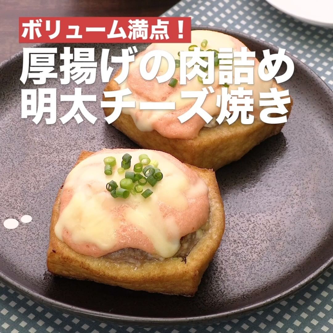 ④<ボリューム満点!厚揚げの肉詰め明太チーズ焼き>