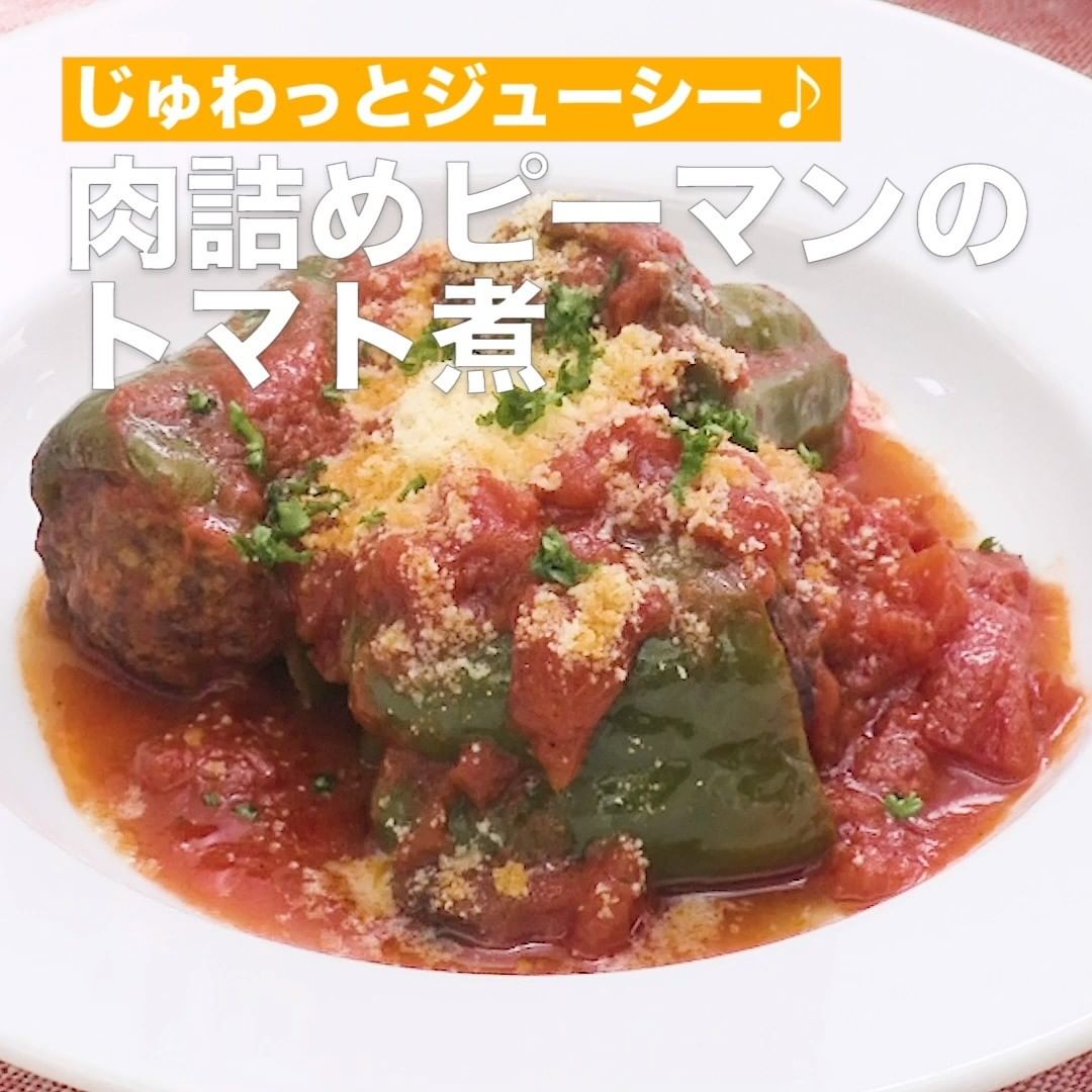 ②<じゅわっとジューシー♪肉詰めピーマンのトマト煮>