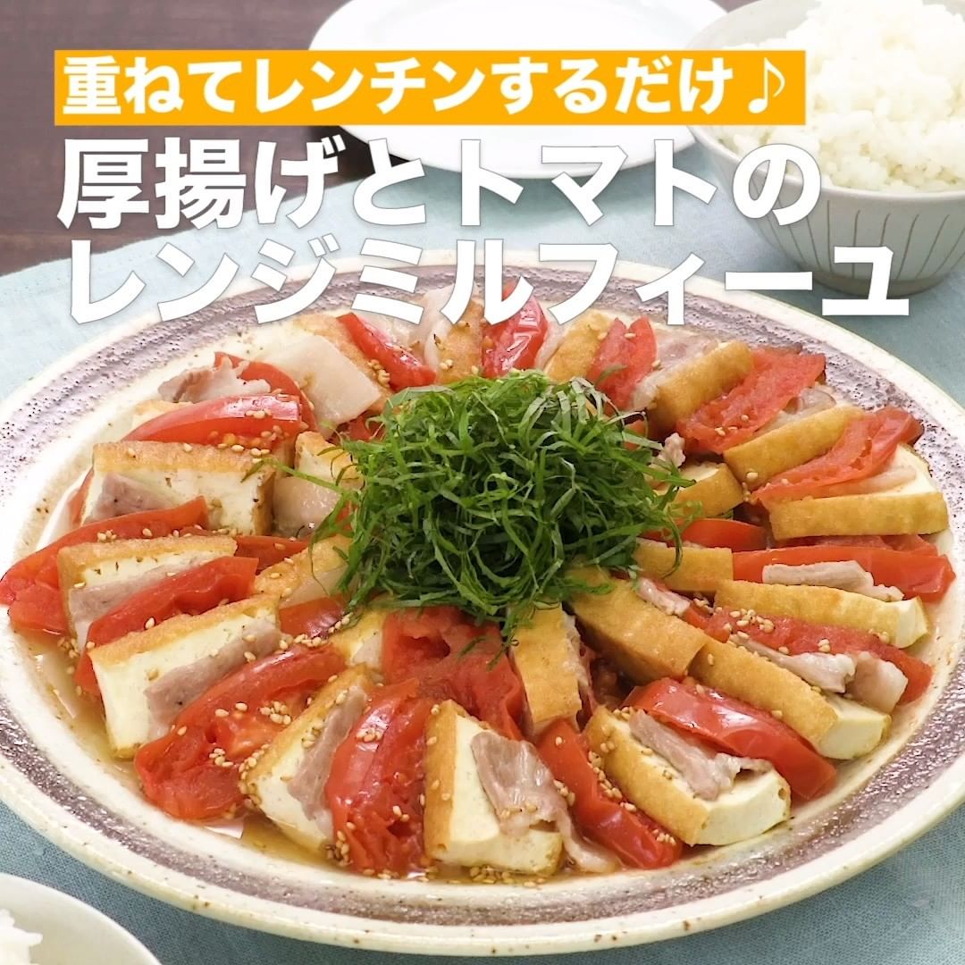 ⑦<重ねてレンチンするだけ♪厚揚げとトマトのレンジミルフィーユ>