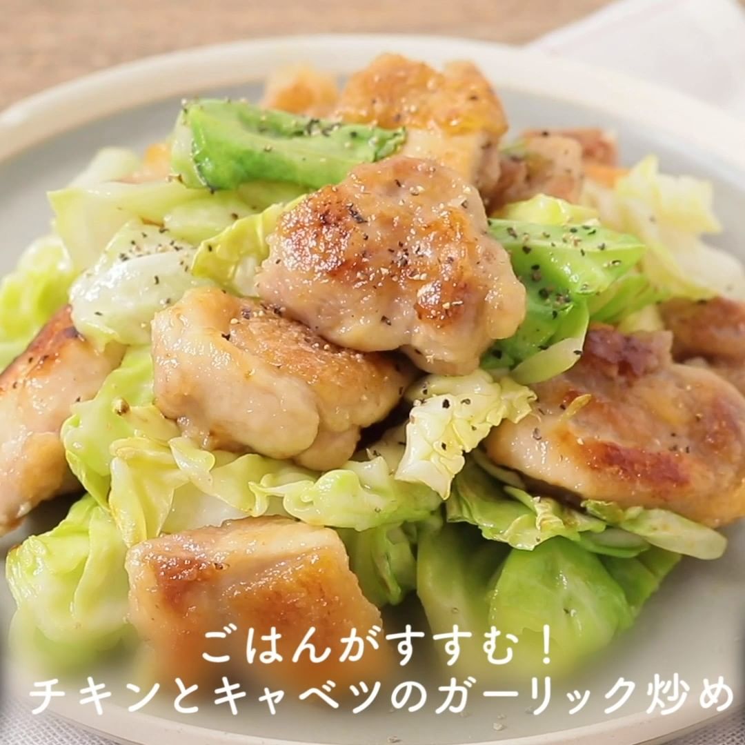⑥ごはんがすすむ!チキンとキャベツのガーリック炒め
