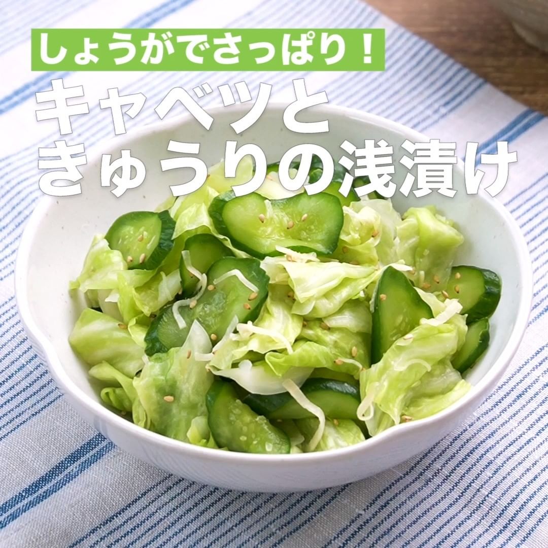 ②<しょうがでさっぱり!キャベツときゅうりの浅漬け>