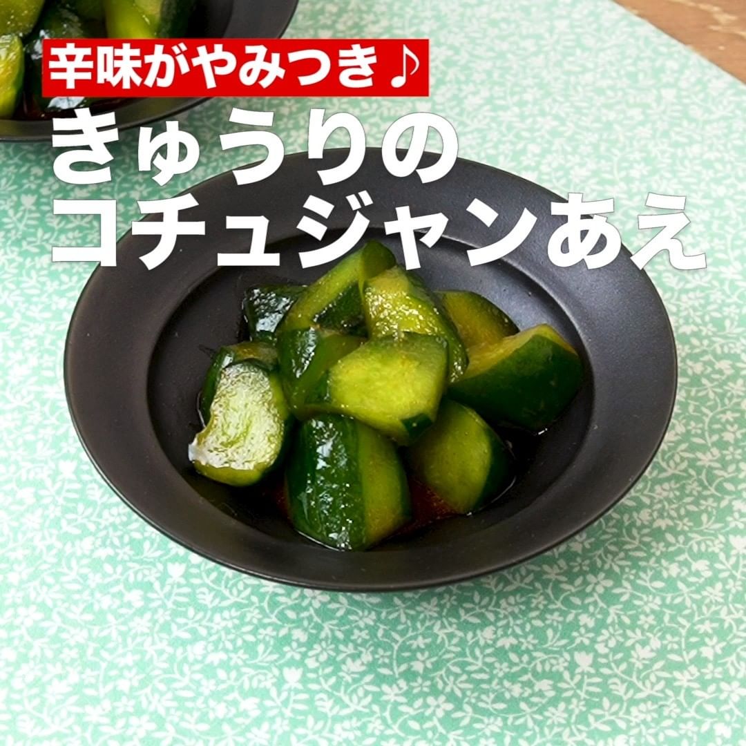 素材ひとつで作れる簡単副菜のご紹介♪きゅうりは青臭さを軽減するために縞目に皮をむきましょう!コチュジャンのおかげであとを引く辛さがくせになる一品です!辛いのがお好きな方は粉唐辛子を足してみてください。