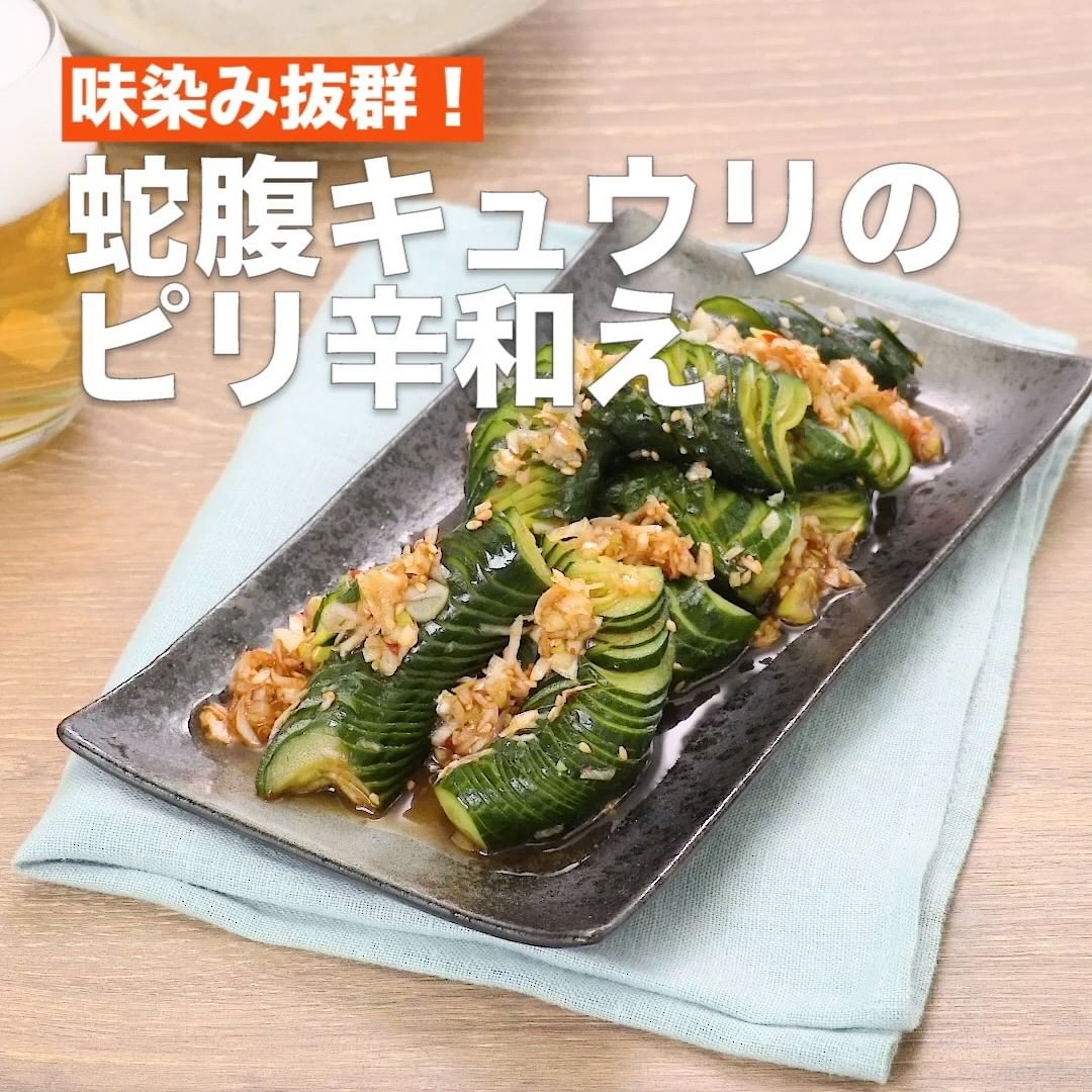 蛇腹状に切ったキュウリを特製ピリ辛だれで和えました!氷水に漬けたキュウリはシャキッと仕上がります!ピリ辛な風味が食欲を増進させる、お手軽レシピです♪ささみやサラダチキンなどをさいて合わせるのもおすすめです。