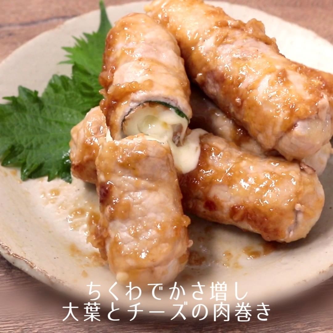 ②ちくわでかさ増し 大葉とチーズの肉巻き