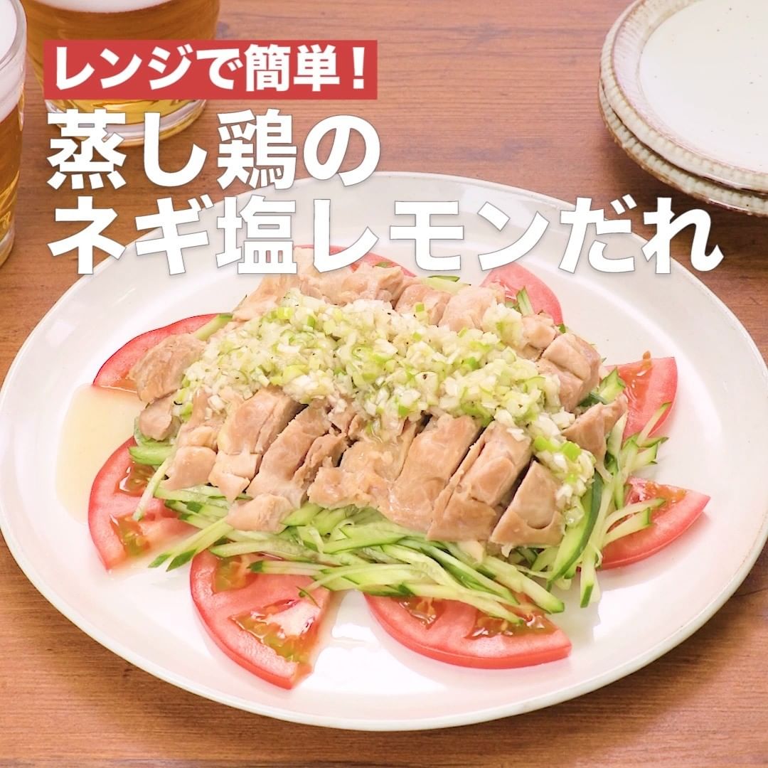 ①<レンジで簡単!蒸し鶏のネギ塩レモンだれ>