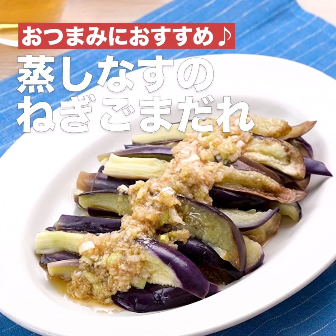 ①<おつまみにおすすめ♪蒸しなすのねぎごまだれ>
