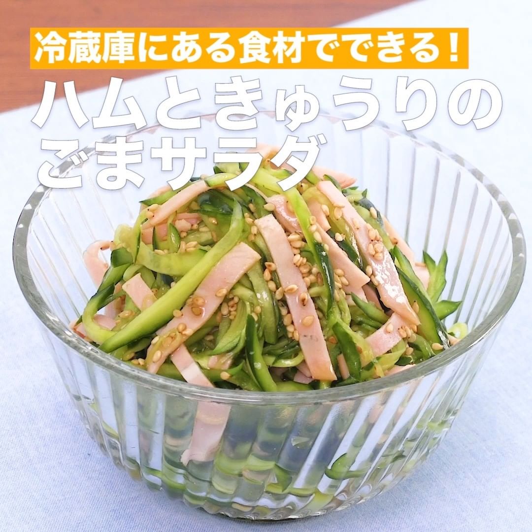 ①<冷蔵庫にある食材でできる!ハムときゅうりのごまサラダ>