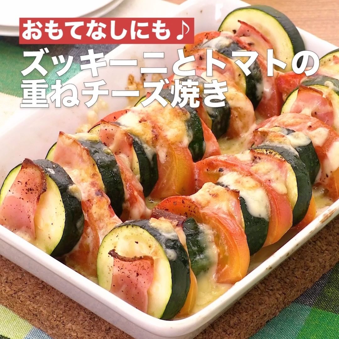 ②<おもてなしにも♪ズッキーニとトマトの重ねチーズ焼き>