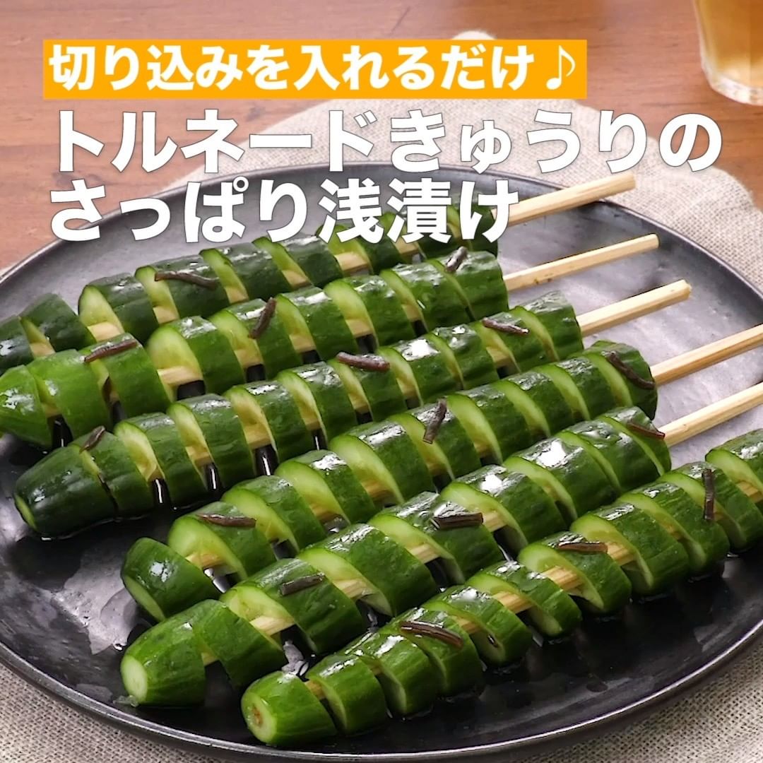 白だしを使って簡単に浅漬けの出来上がり!ビールのお供にもおすすめです♪等間隔に切り込みを入れるときれいなトルネードになります。白だしは製品によって塩分量に違いがあります。詳しい内容は注意点をご確認ください。