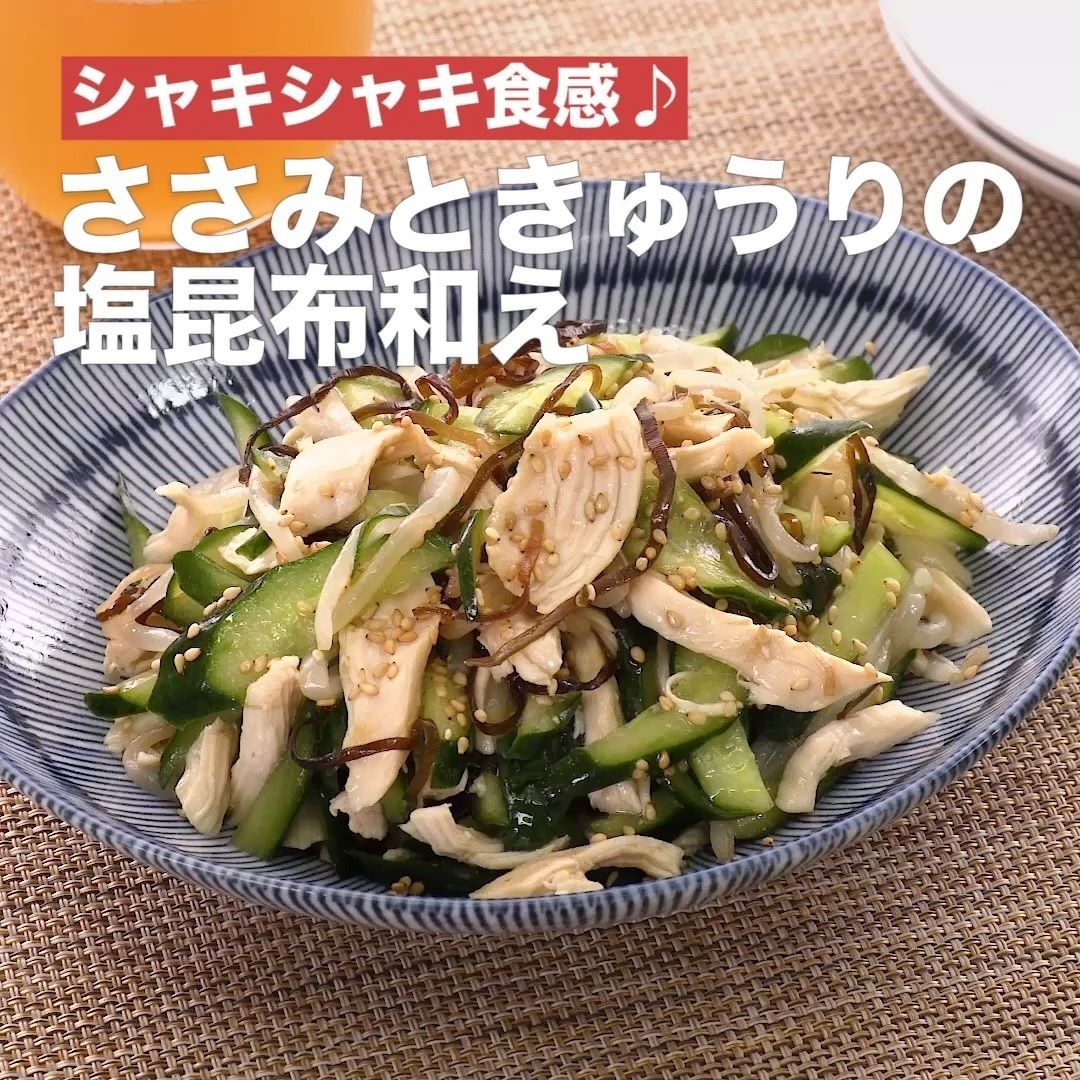 ⑦<シャキシャキ食感♪ささみときゅうりの塩昆布和え>