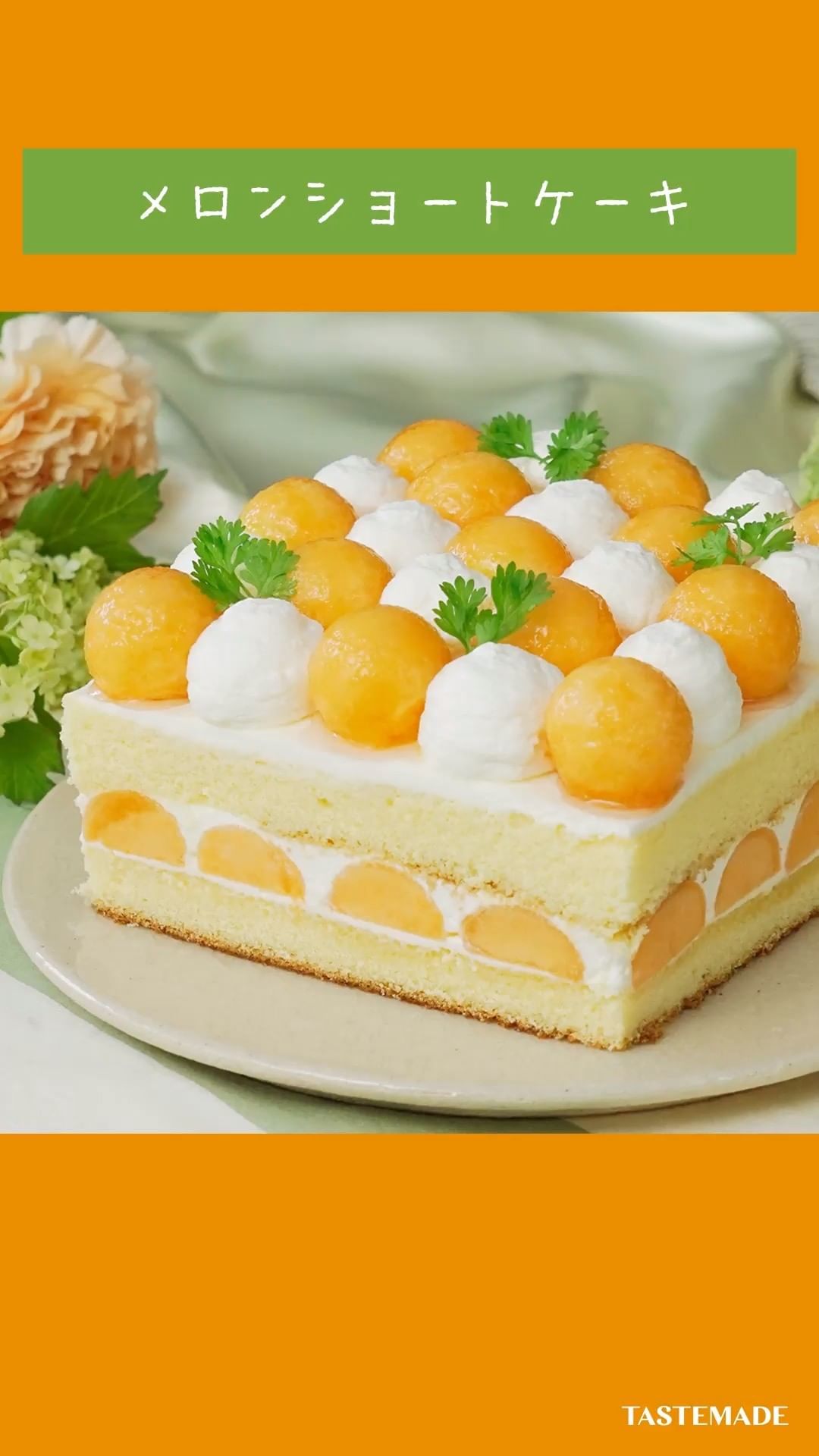 メロンの果肉とジュースを丸ごと使ったショートケーキを作ってみました!