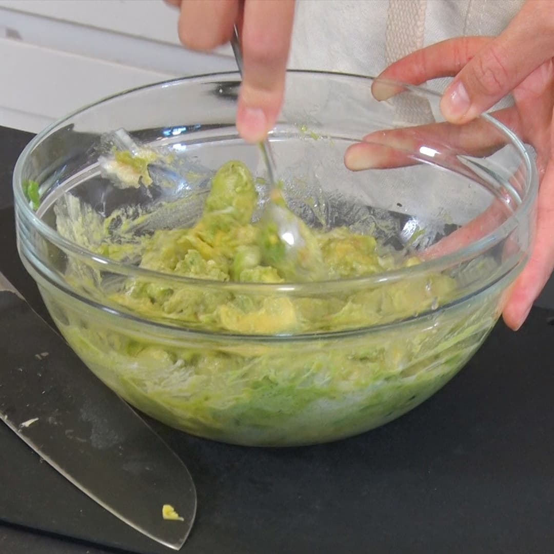 ⑤ しょう油小さじ1を入れ混ぜ、アボカドのディップを作る