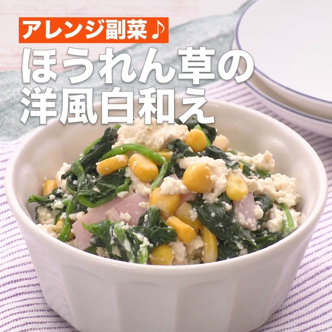 ⑤<アレンジ副菜♪ほうれん草の洋風白和え>