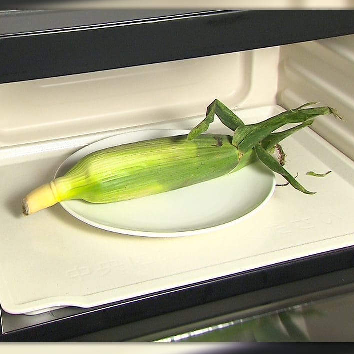 ①とうもろこし1個を皮付きのまま600Wで7分レンチン