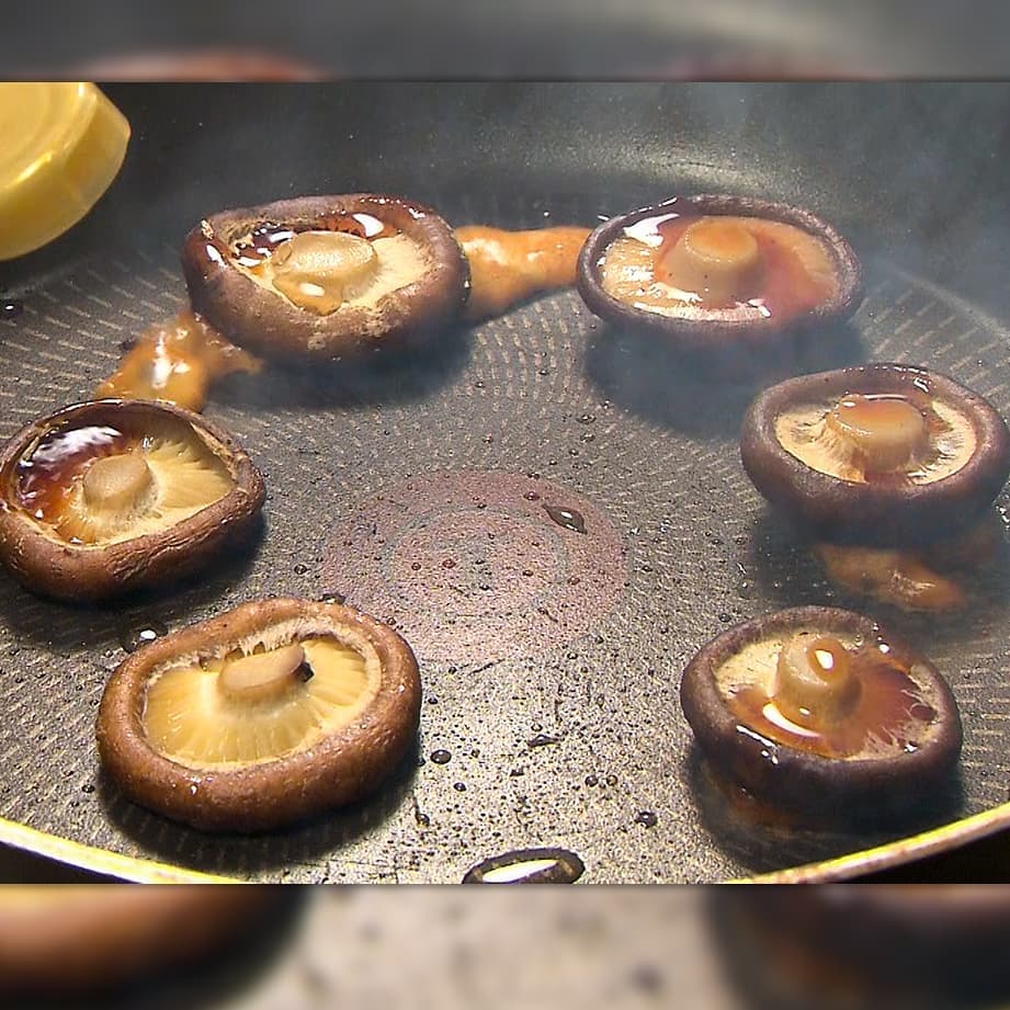③ フライパンに冷凍しいたけを入れ、蓋を閉め中火で5分焼く