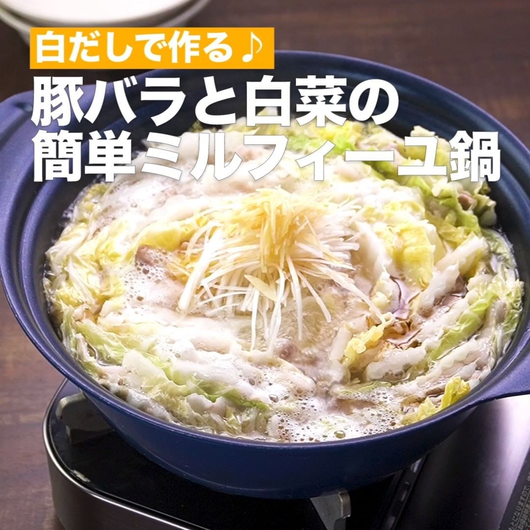 ⑦<白だしで作る♪豚バラと白菜の簡単ミルフィーユ鍋>