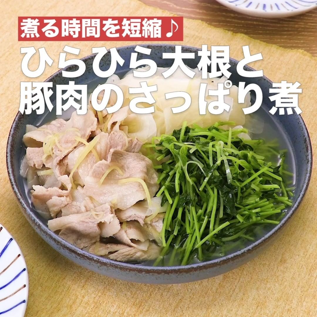 ⑥<煮る時間を短縮♪ひらひら大根と豚肉のさっぱり煮>