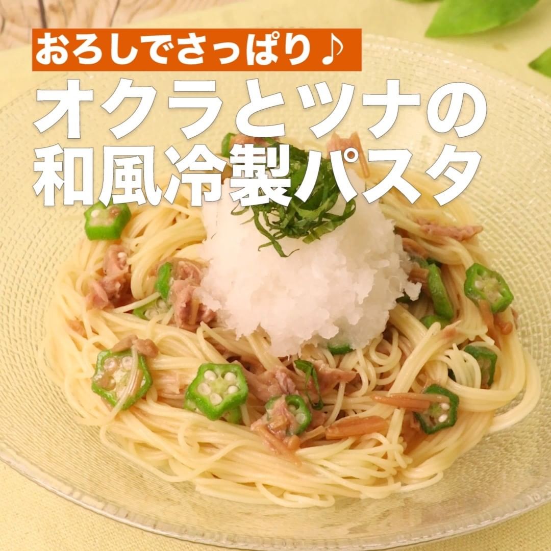 ④<おろしでさっぱり♪オクラとツナの和風冷製パスタ>