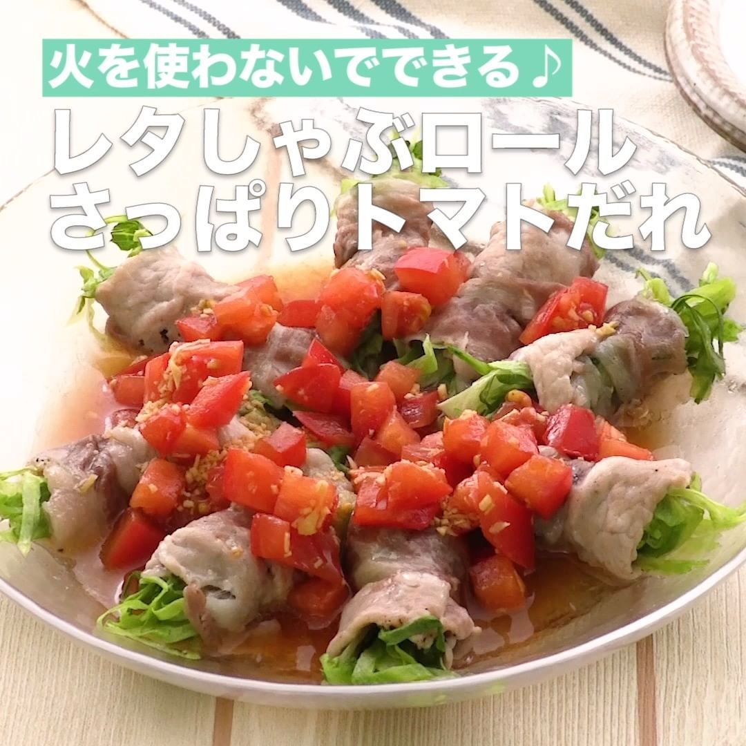 ④<火を使わないでできる♪レタしゃぶロール さっぱりトマトだれ>