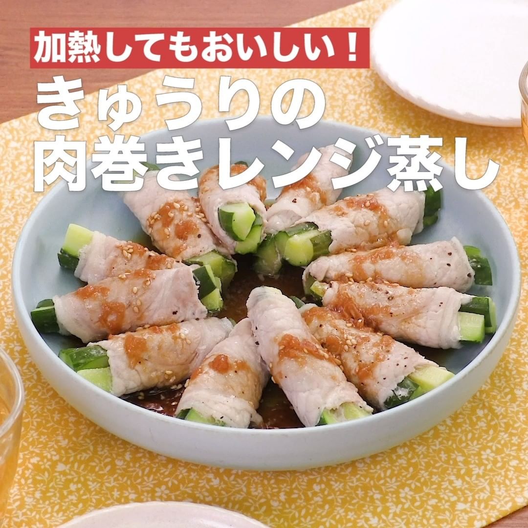 きゅうりを豚肉で巻いてレンジで加熱するだけの簡単おかずをご紹介♪生で食べることの多いきゅうりですが、加熱してもおいしく食べられることをご存知ですか?梅ポン酢だれをつけて、さっぱりといただきましょう!