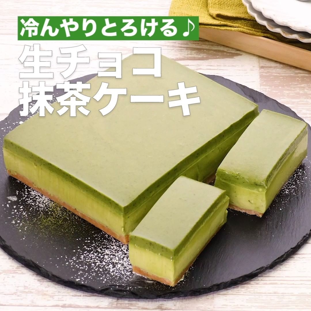 ①<冷んやりとろける♪生チョコ抹茶ケーキ>