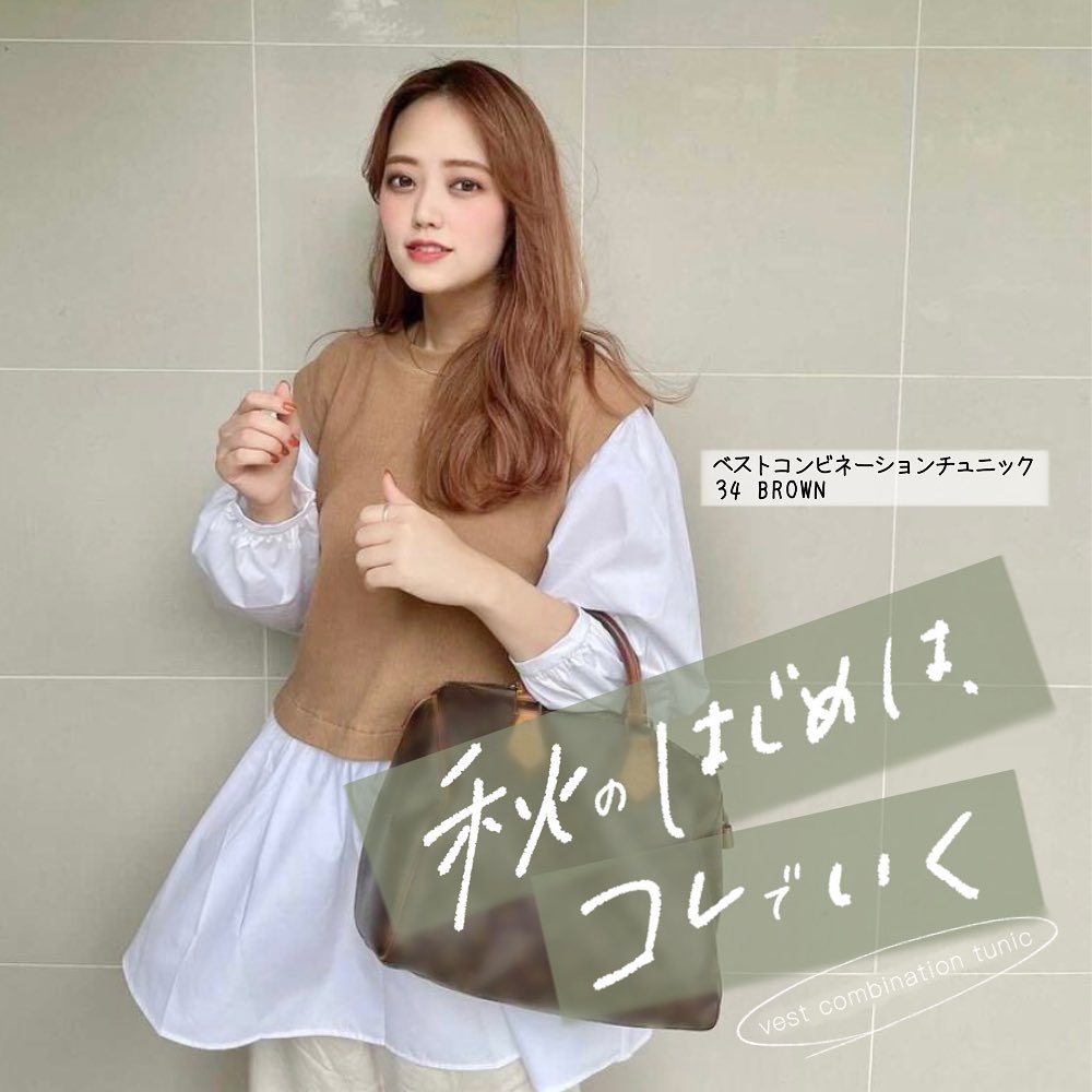 トレンドのレイヤードスタイルが、簡単に楽しめる長袖チュニック✨ドッキングした裾のフレアディテールと、ふんわりボリューム袖が、フェミニンムードをぐっと高めてくれますね👌シックな秋色に、シャツのパリッとしたハリ感が、今年らしくて高見え👍褒められアイテムで、秋コーデの完成です🥰