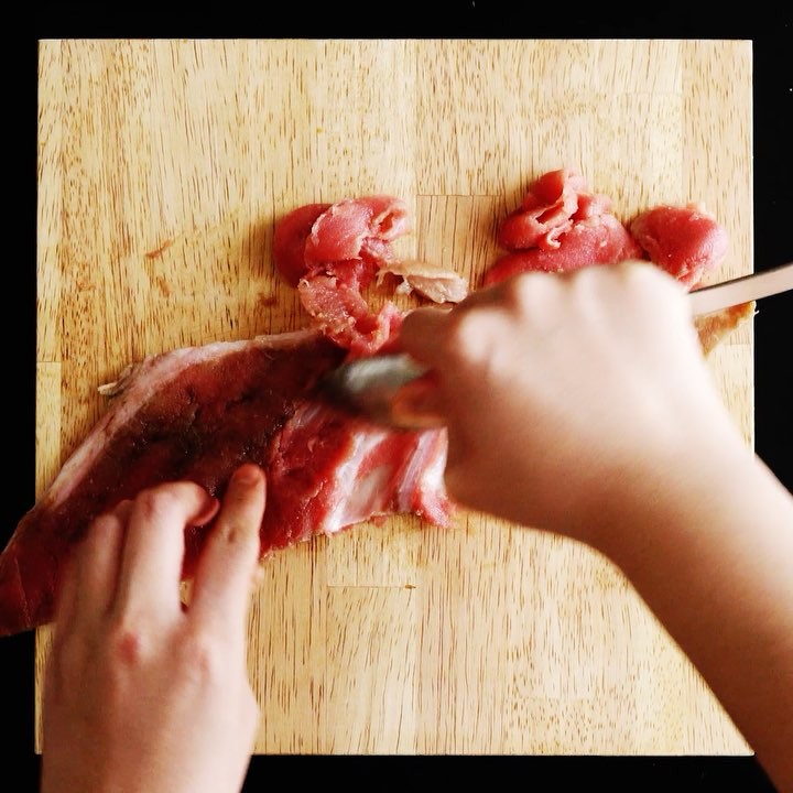 1.マグロから、すき身をすきとり醤油とごま油で味を付ける