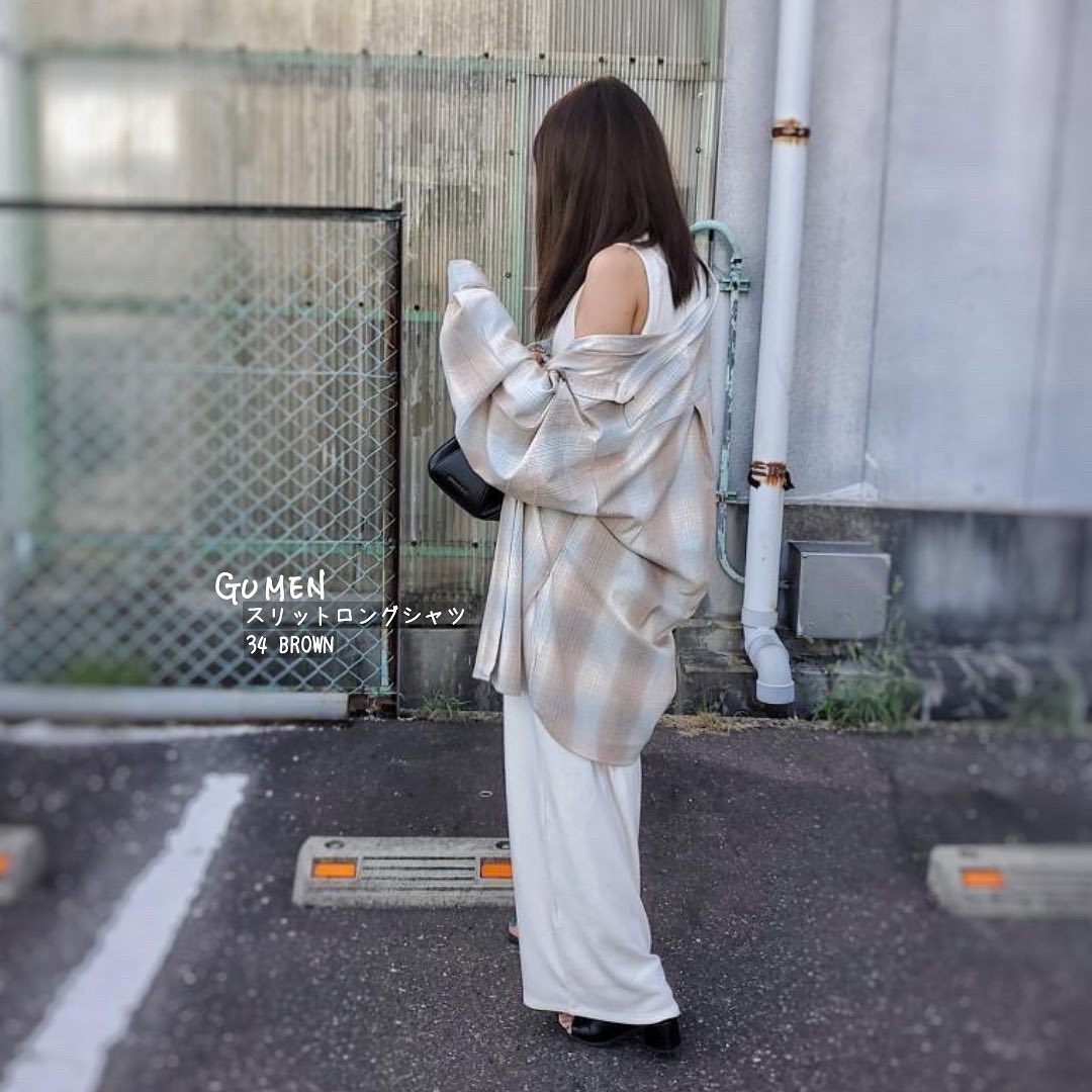 ☑︎スリットロングシャツ(長袖)(チェック)NT+E