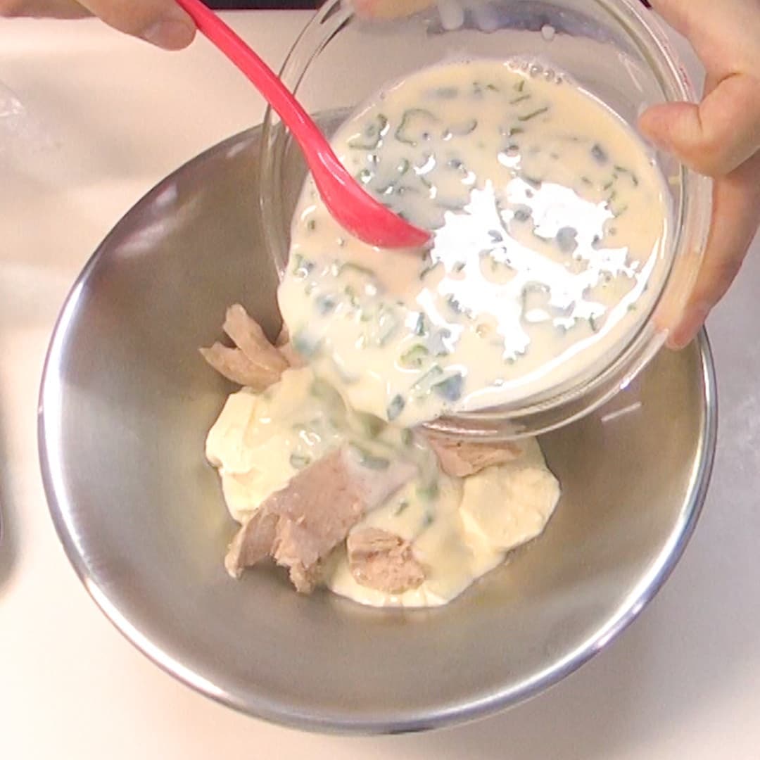 ⑦豆腐、ツナを冷蔵庫で冷やす