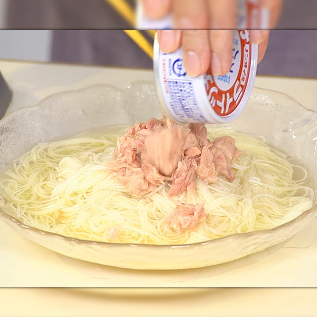ツナ缶を油ごと真ん中にのせる