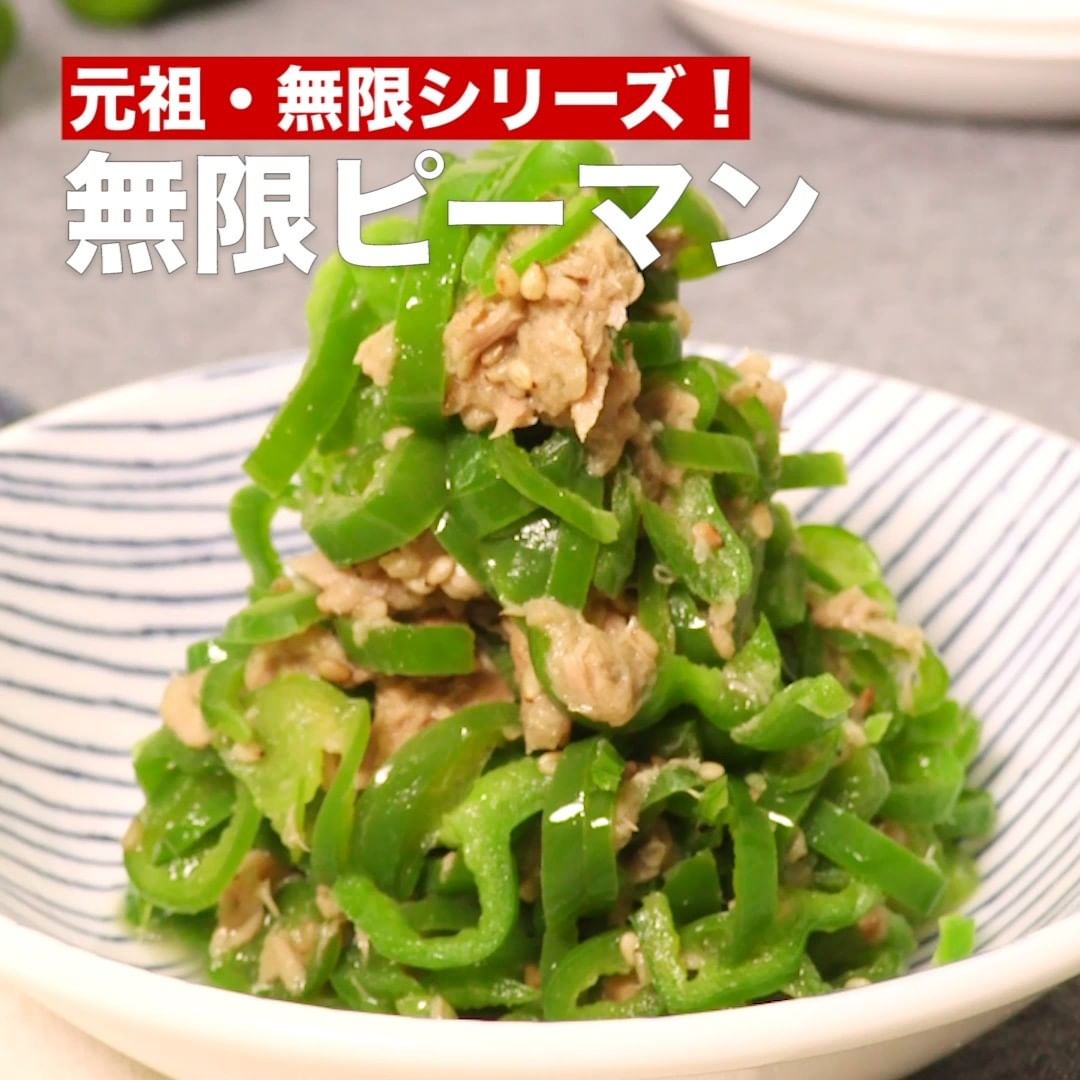 人気の無限シリーズの元祖、無限ピーマンをご紹介♪混ぜてレンジでチンするだけでごはんが止まらないおかずに♪ピーマンを大量消費したい時におすすめの一品です。夜ご飯の副菜やお弁当のおかずにぜひお試しください!