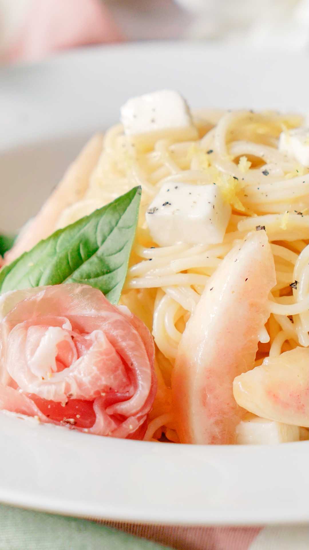 【3回言ってみて!】モモモッツァレラパスタ🍑