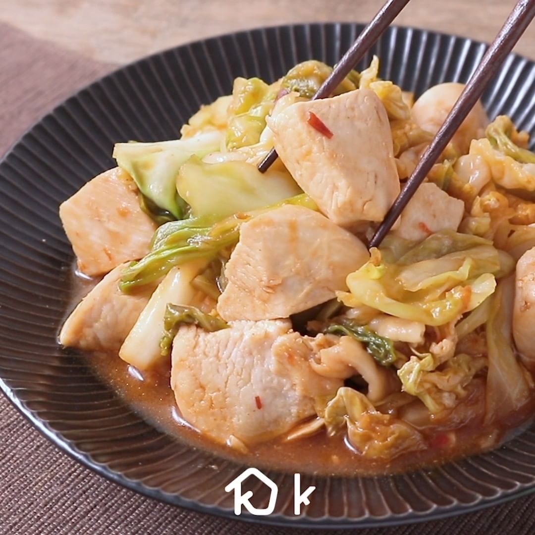 ⑤鶏むね肉とキャベツのピリ辛炒め