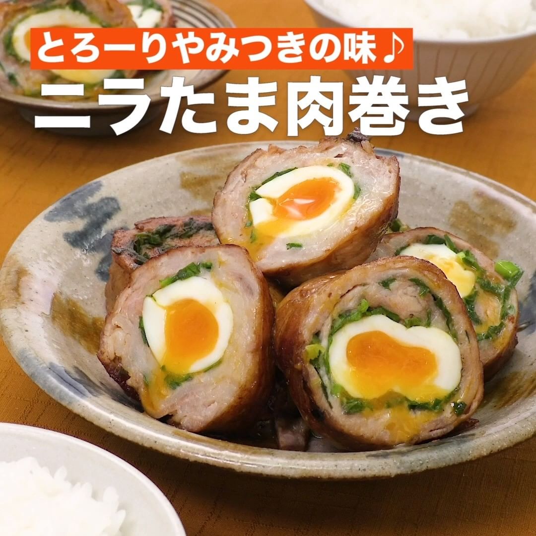 ③<とろーりやみつきの味♪ニラたま肉巻き>