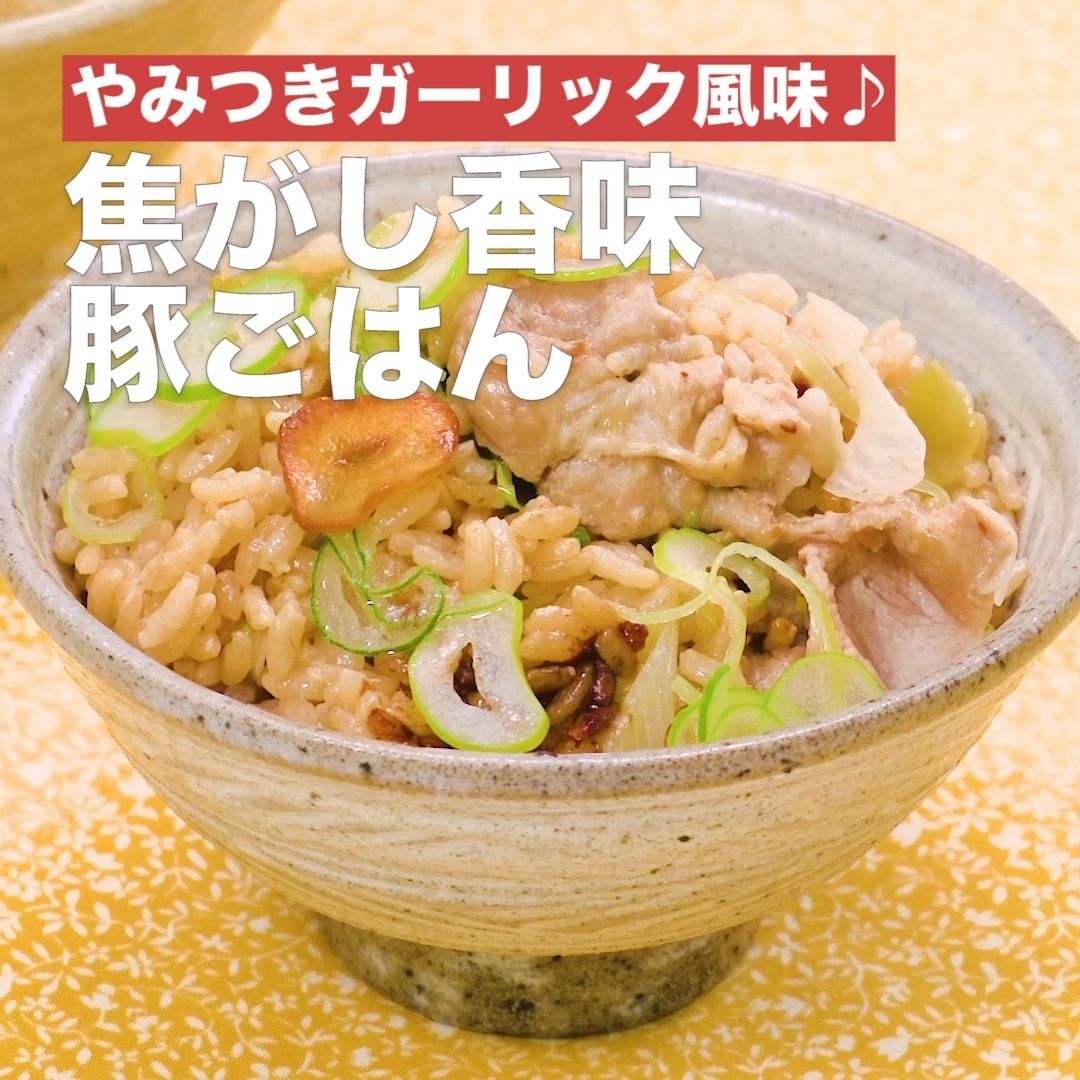 ①<やみつきガーリック風味♪焦がし香味豚ごはん>