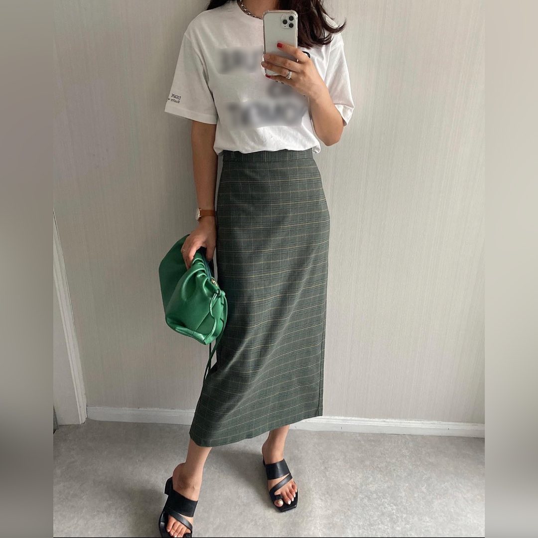 チェックナロースカートをPick up!シルエットがきれいな、ナロースカートがかわいい😘品よく着こなせるアイテムだから、カジュアルにまとめてもいい感じ👌後ろにスリットが入っているので、動きやすいのもポイントです☝️これからの季節にもぴったりな、チェック柄のスカート🙌🍁